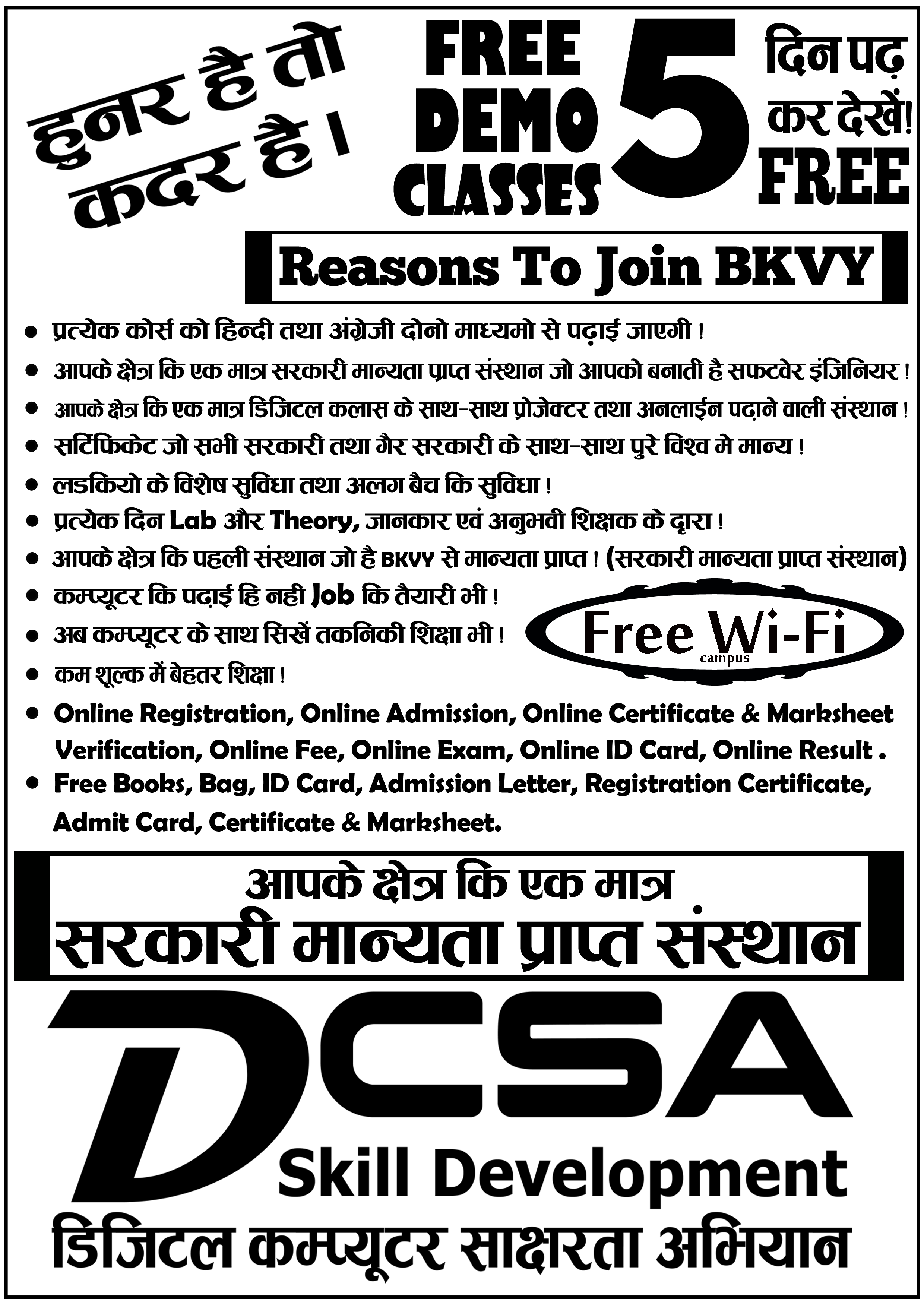 An ISO 9001 : 2015 Certified India s Largest Computer Educational Organization Established Under Ministry of Corporate Affairs, Govt. of India, भारत सरकार के आधीन चलने वाला और भारत का सबसे बड़ा स्किल डेवलपमेंट संसथान से जुड़ के काम करने के लिए और भारत को नई उड़ान देने के लिए आज ही जुड़े भारत के अग्रिम स्किल डेवलपमेंट संसथान से !,